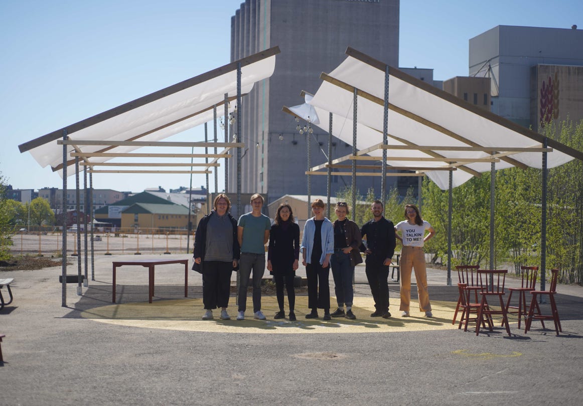 emergent_lab and studioträda were invited to develop our vision of a „Living Theater“ at the abandoned train platform Spårharpan in Västerås. The area next to the new station and the future district of Mälarporten played host for several workshops and other events in the summer of 2023 curated by the two groups, Västeras Stad, and other organizations.